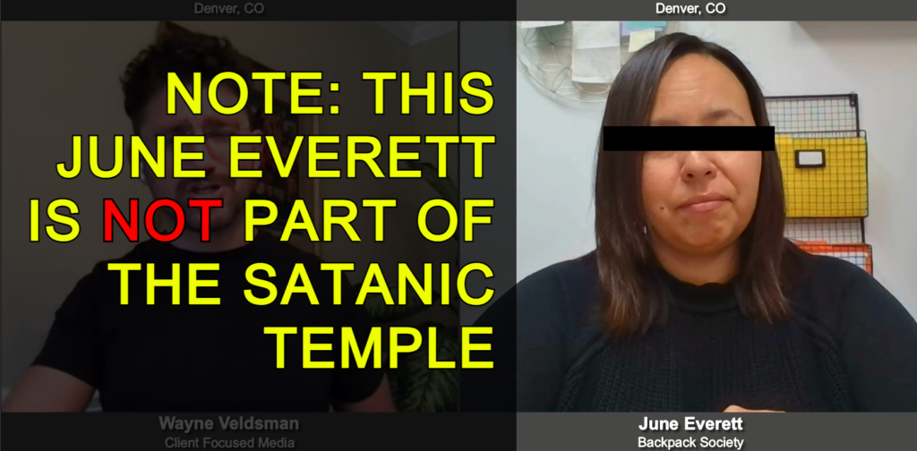 Everett references doxing, and we’ll address that at the bottom because it turns out to be much too complicated to get into here. All subsequent press references to the campaign director of After School Satan also quote “June Everett”, so we’re going to have to follow that naming convention.