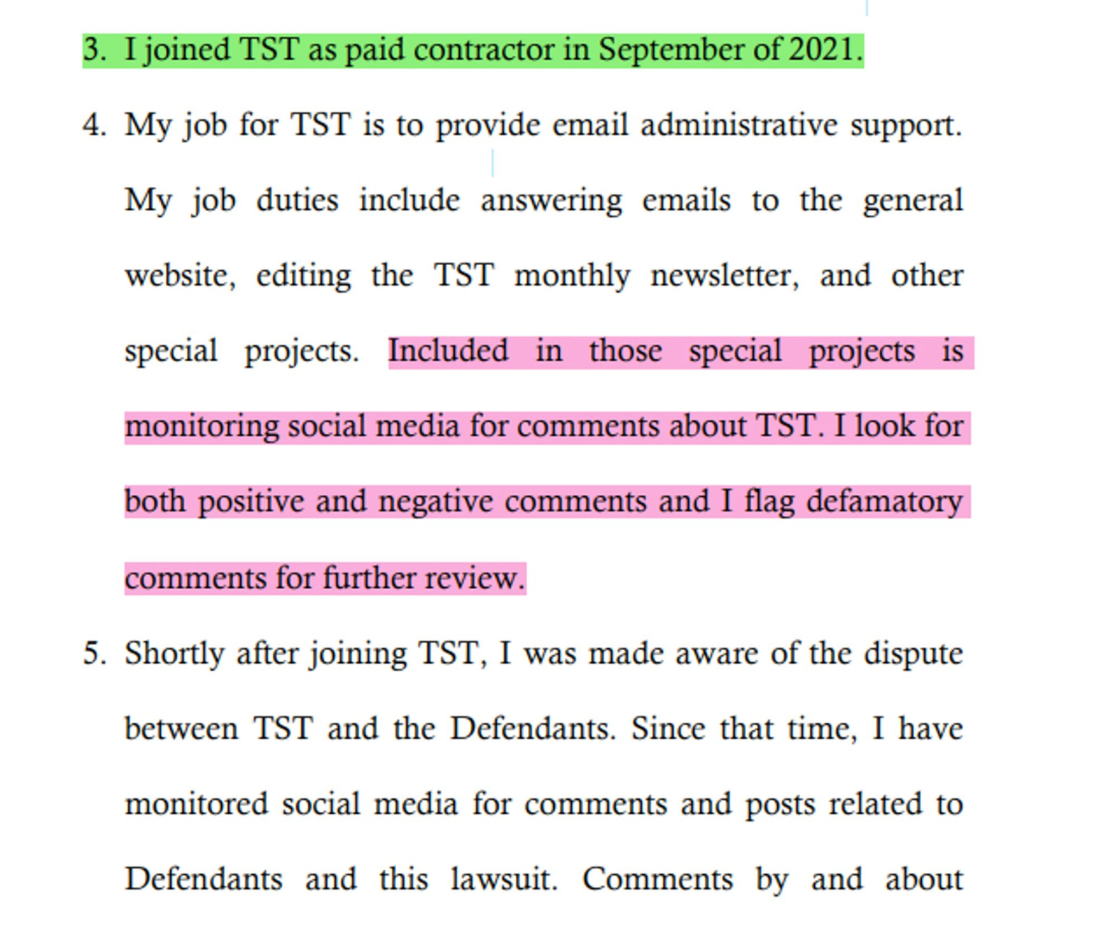 The idea The Satanic Temple actively commits resources to spy on and threaten people who criticize them on social media isn’t some conspiracy theory to be debunked with “the smallest amount of research” — it’s something that TST flatly admitted in federal court they do.