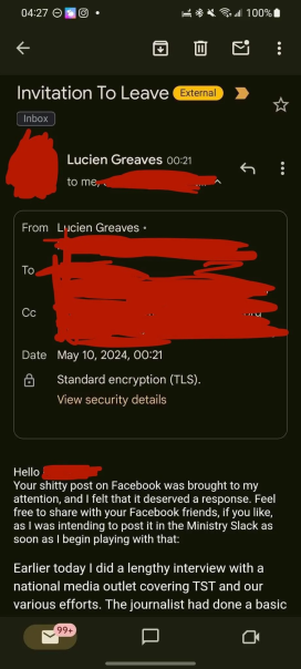 Lucien Greaves “Invitation To Leave” email