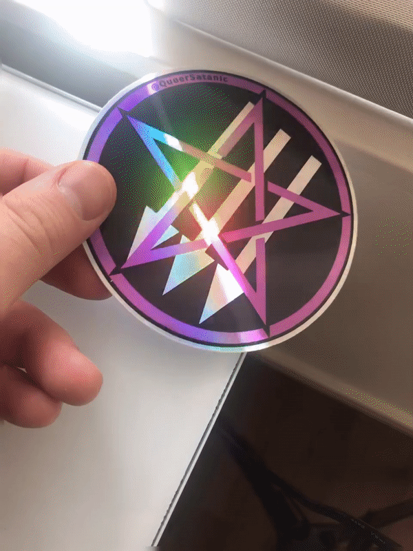 For people within USA, you can also email stickers@queersatanic.com for stickers, with batches offered at a bulk discount as a “thank you” for your support.