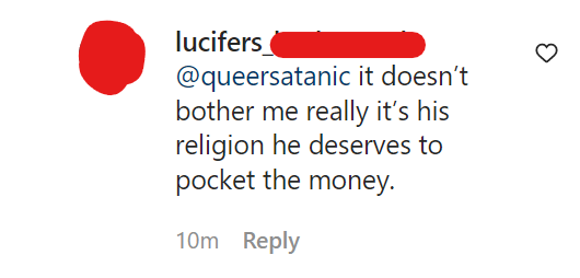 Some go even further: “it’s his religion he deserves to pocket the money.”